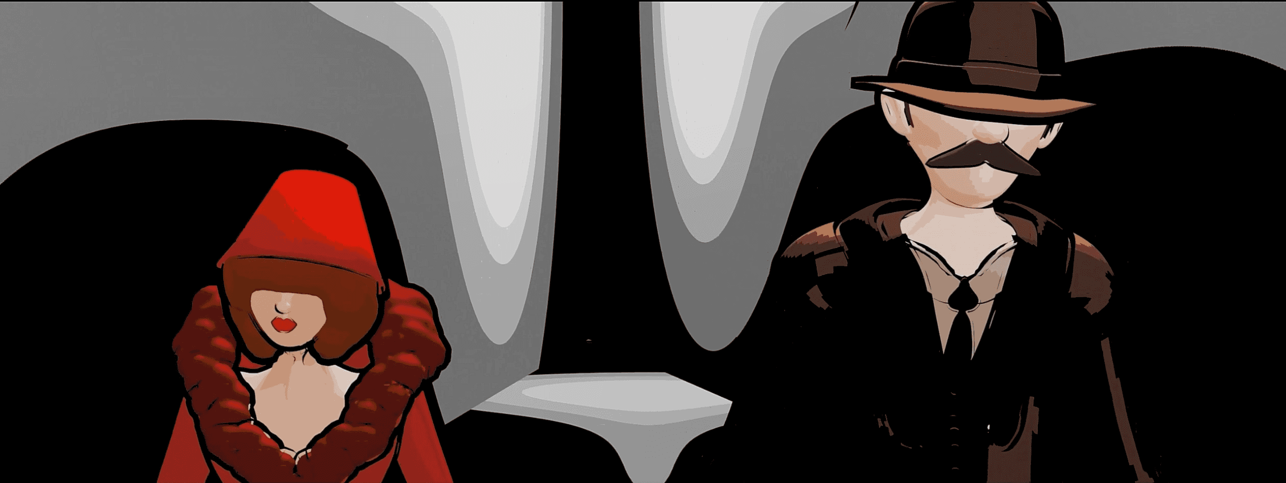 As for the environment, this short story is divided into 3 different settings. Firstly, there's the train station in which the action begins, which was carefully modeled to accurately represent Lisbon's Santa Apolónia station in the 1950's. One of the main elements of this environment is the train in which the characters get in. This train was also modeled to resemble “Foguete”, the 1953's train that traveled from Lisbon to Porto.